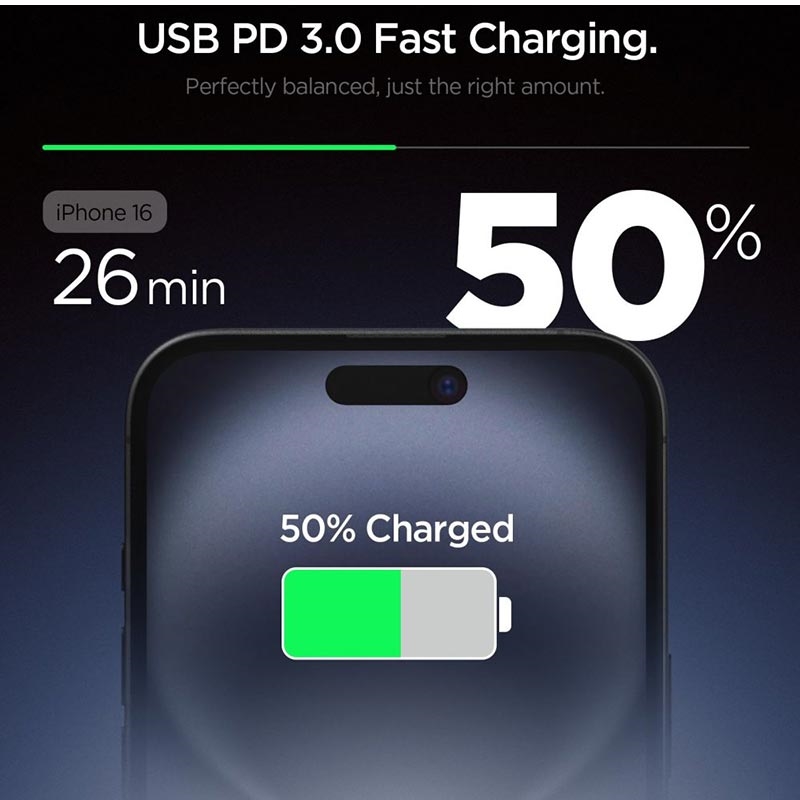 Das Spigen EE301EU Ladegerät bietet schnelles Aufladen und Zuverlässigkeit, ideal für alle, die eine effiziente und tragbare Stromquelle suchen.