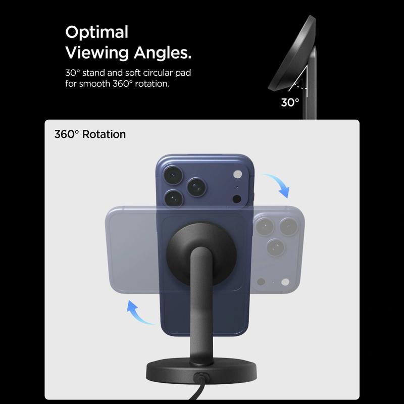 Das Spigen EF151MS vereint starke magnetische Ausrichtung, einen komfortablen Betrachtungswinkel und stabiles kabelloses Laden in einem kompakten Gerät. Es ermöglicht Ihnen, Ihr Smartphone gleichzeitig zu laden und zu verwenden, ohne es in der Hand halten zu müssen, was es sowohl für die Arbeit als auch für die Freizeit praktisch macht. Mit integrierten Sicherheitsvorkehrungen und einem mitgelieferten strapazierfähigen USB-C-Kabel bietet es zuverlässiges Laden in einem klaren, modernen Design.