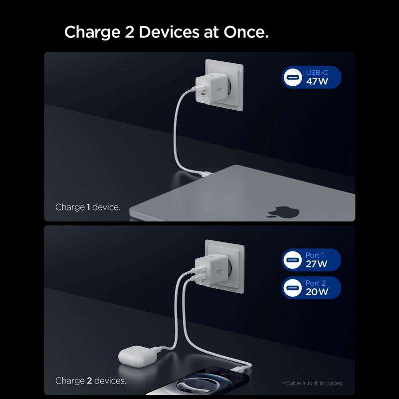 Spigen Essential EE472EU 2-Port Wand-Ladegerät - 47W GaN Pro Dual USB-C Schnell-Ladegerät