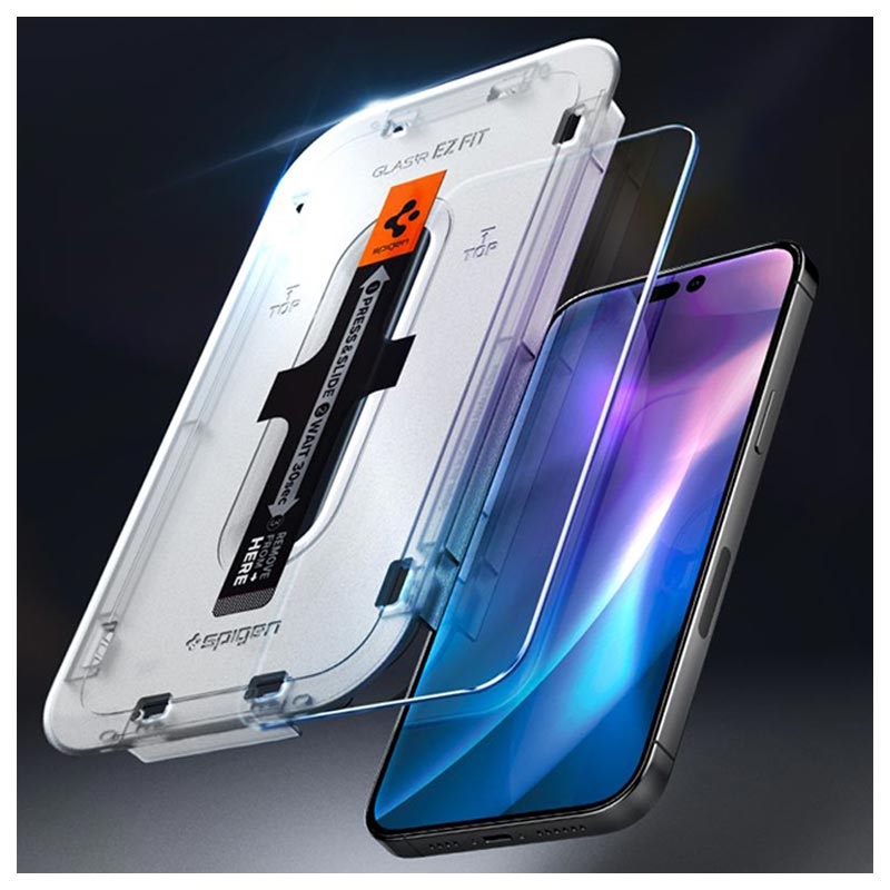 - Gehärteter Glasbildschirm für das iPhone 14 Pro von Spigen
