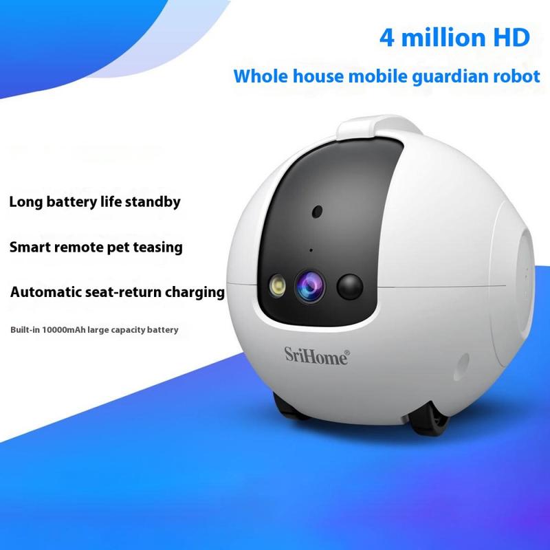• SRIHOME DH013 AI Intelligenter Kamera-Roboter für Haustierüberwachung mit Ladestation - Intelligente AI-Interaktion, 360-Blick, Vollfarb-Nachtsicht, Zwei-Wege-Audio & 10000mAh Batterie