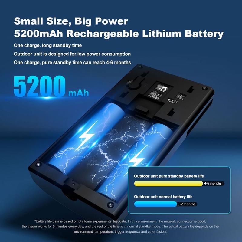 Enhance your home security with the SRIHOME DH051_002_008 Smart Wireless Doorbell Set, a modern and energy-efficient solution for convenient communication and monitoring. Featuring a 4MP HD video system, WiFi 6 connectivity, and a 5-inch color display, it ensures clear visuals and smooth performance. With two-way audio, support for multiple doorbells or cameras, and local network functionality, this system delivers reliable operation even during internet outages. Ideal for households seeking smart, secure, and easy-to-use intercom functionality.