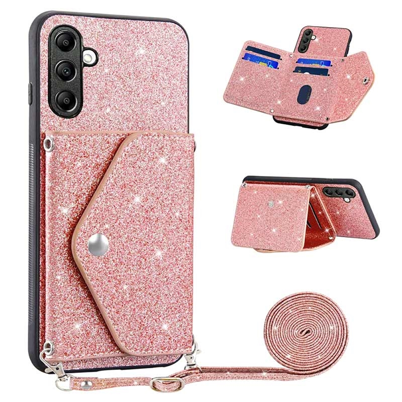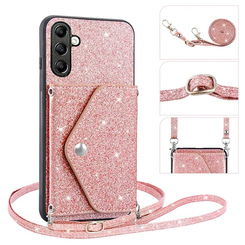 Die hochwertige Hülle aus der Stardust-Serie ist die richtige Wahl, um Ihr Samsung Galaxy A14 vor möglichen Schäden zu schützen. Es hat einen Kartenhalter auf der Rückseite mit einem Druckknopf, der großartig ist, um Ihre wichtigen Karten aufzubewahren und sicher aufzubewahren. Eine glänzende Glitzeroberfläche verleiht Ihrem Telefon einen Hauch von Glamour. Darüber hinaus wird die Hülle mit einem 150cm langen Schultergurt geliefert, mit dem Sie Ihr Samsung Galaxy A14 überall hin mitnehmen können.