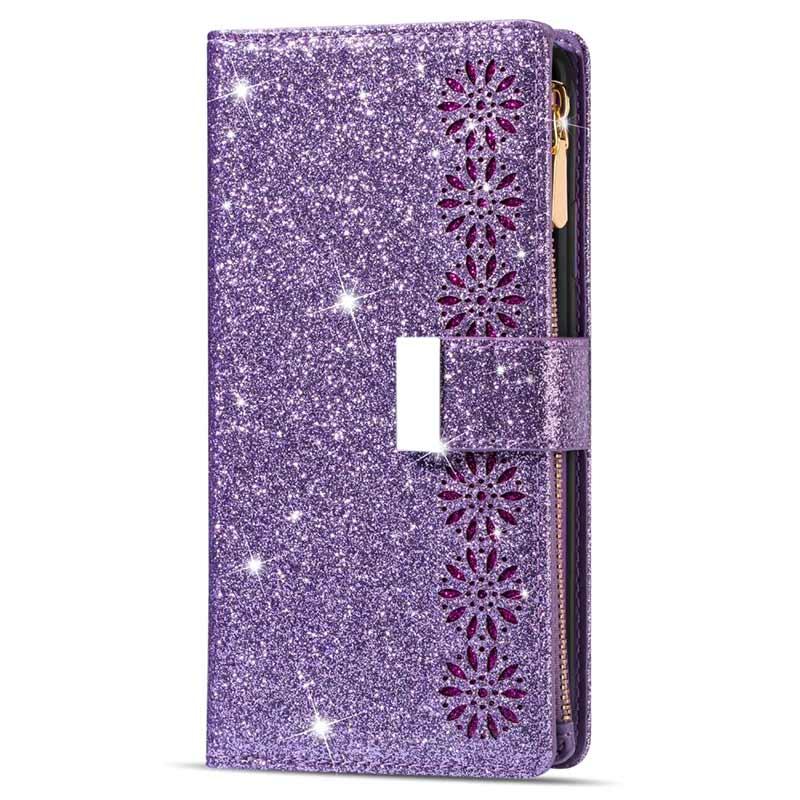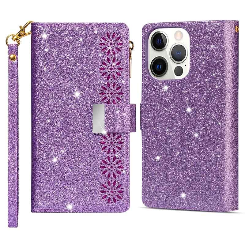Die eleganteste Art, Ihr iPhone 14 Pro Max zu tragen, ist mit dieser glitzernden Wallet-Tasche geschützt. Es bietet einen hervorragenden Rundumschutz, während der starke Magnetverschluss alle Ihre Wertsachen und Ihr iPhone 14 Pro Max sicher hält. Das Etui verfügt über mehrere Kartenfächer und eine große Reißverschlusstasche, während die klappbare Rückseite als Ständer zum bequemen Anschauen von Medien dient. Diese elegante Brieftasche für das iPhone 14 Pro Max wird mit einem praktischen Schlüsselband für zusätzliche Sicherheit an belebten Orten geliefert.