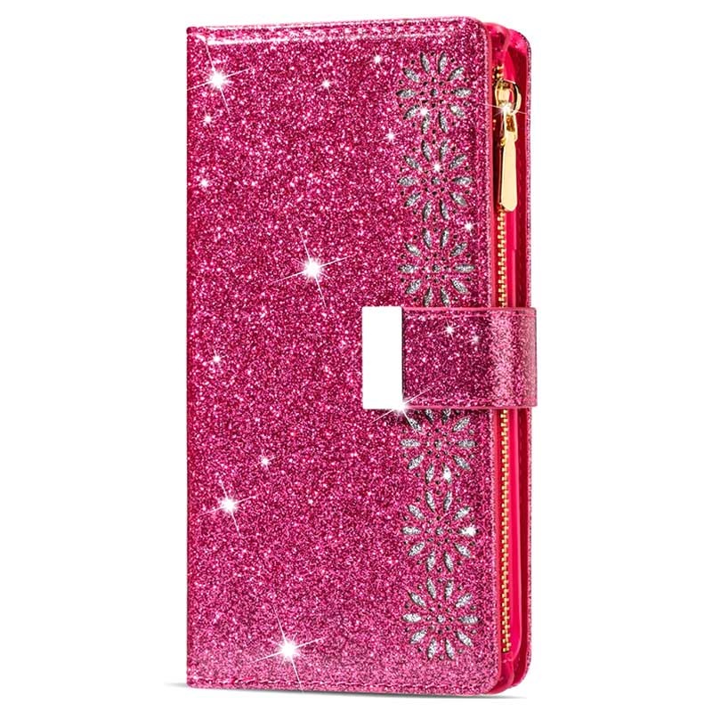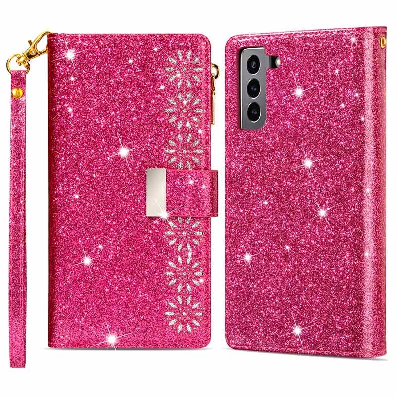 Die eleganteste Art, Ihr Samsung Galaxy S22 5G zu tragen, ist mit dieser glitzernden Wallet-Tasche geschützt. Es bietet einen hervorragenden Rundumschutz, während der starke Magnetverschluss alle Ihre Wertsachen und Ihr Samsung Galaxy S22 5G sicher hält. Das Etui verfügt über mehrere Kartenfächer und eine große Reißverschlusstasche, während die klappbare Rückseite als Ständer zum bequemen Anschauen von Medien dient. Diese elegante Brieftasche für das Samsung Galaxy S22 5G wird mit einem praktischen Schlüsselband für zusätzliche Sicherheit an belebten Orten geliefert.