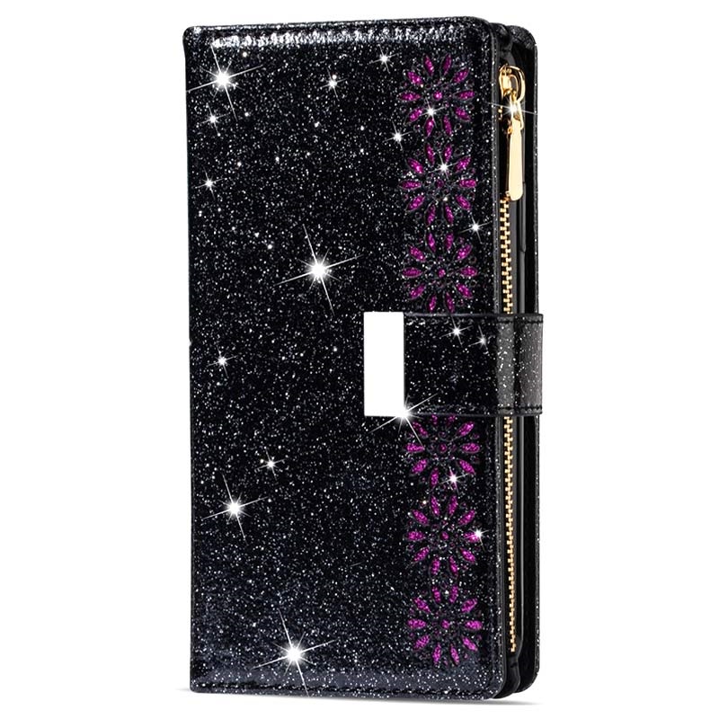 Die eleganteste Art, Ihr Samsung Galaxy S22 5G zu tragen, ist mit dieser glitzernden Wallet-Tasche geschützt. Es bietet einen hervorragenden Rundumschutz, während der starke Magnetverschluss alle Ihre Wertsachen und Ihr Samsung Galaxy S22 5G sicher hält. Das Etui verfügt über mehrere Kartenfächer und eine große Reißverschlusstasche, während die klappbare Rückseite als Ständer zum bequemen Anschauen von Medien dient. Diese elegante Brieftasche für das Samsung Galaxy S22 5G wird mit einem praktischen Schlüsselband für zusätzliche Sicherheit an belebten Orten geliefert.