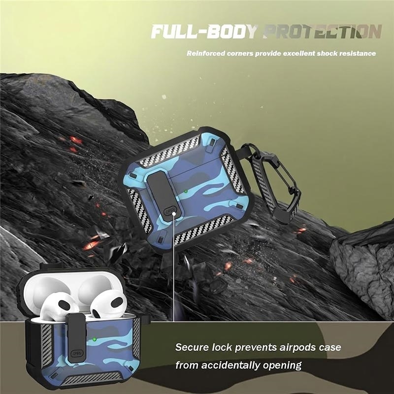 Tarnfarbenes, stoßfestes TPU-Etui mit Karabinerhaken für AirPods 4 - mit Unterstützung für kabelloses Laden