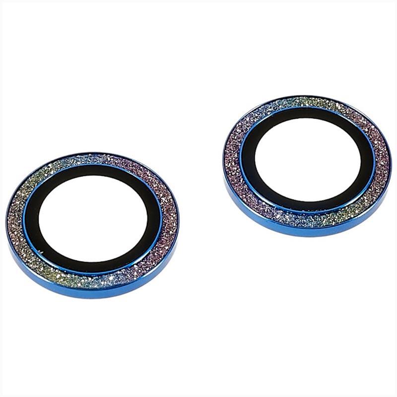 Strass iPhone 14/14 Plus Kameraobjektiv Panzerglas Schutz - Bunt / Blau