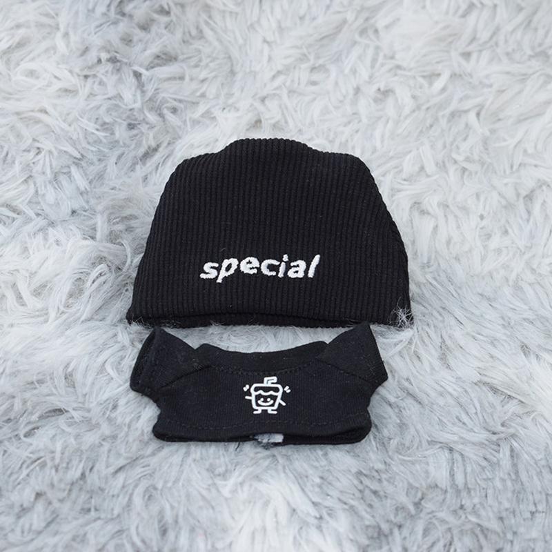 Streetstyle-Kleidung für Labubu-Puppe 17cm - Strickmütze & Graphic Tee Kostüm