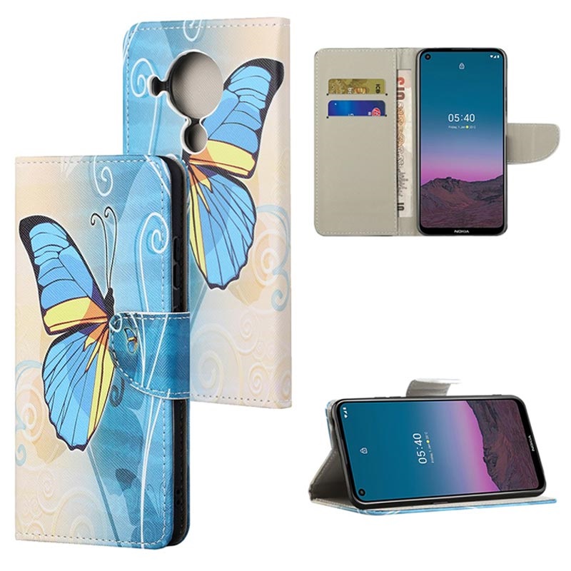 Style Series Nokia 5.4 Schutzhülle mit Geldbörse - Blau Schmetterling