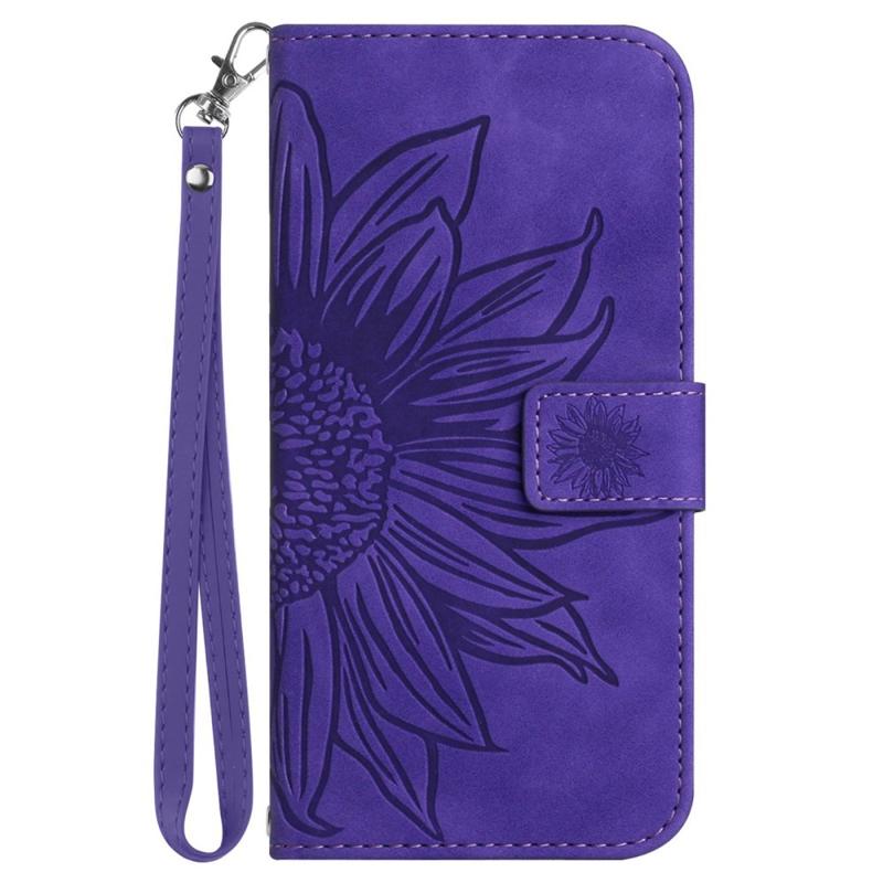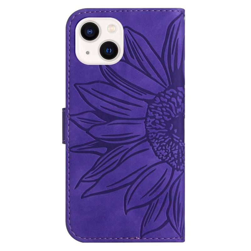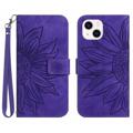 Flip Phone Case for iPhone 14 Plus, HT04 Imprinted Sunflower Viewing Stand PU Leather Skin-Touch Magnetic Wallet Cover with Strap