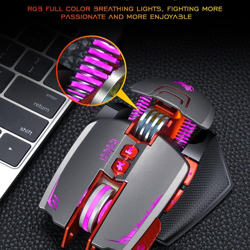 Die kabelgebundene T-WOLF V9 Gaming-Maus vereint leistungsstarke Funktionen, benutzerfreundliche Ergonomie und eine beeindruckende RGB-Beleuchtung in einem einzigen Paket. Ihr reaktionsschneller Sensor und die robuste Bauweise helfen Ihnen, den Wettbewerbsvorteil zu behalten, während das auffällige Design moderne Gaming-Setups ergänzt. Mit einer zuverlässigen und komfortablen Maus sind Sie für jede virtuelle Herausforderung gewappnet.