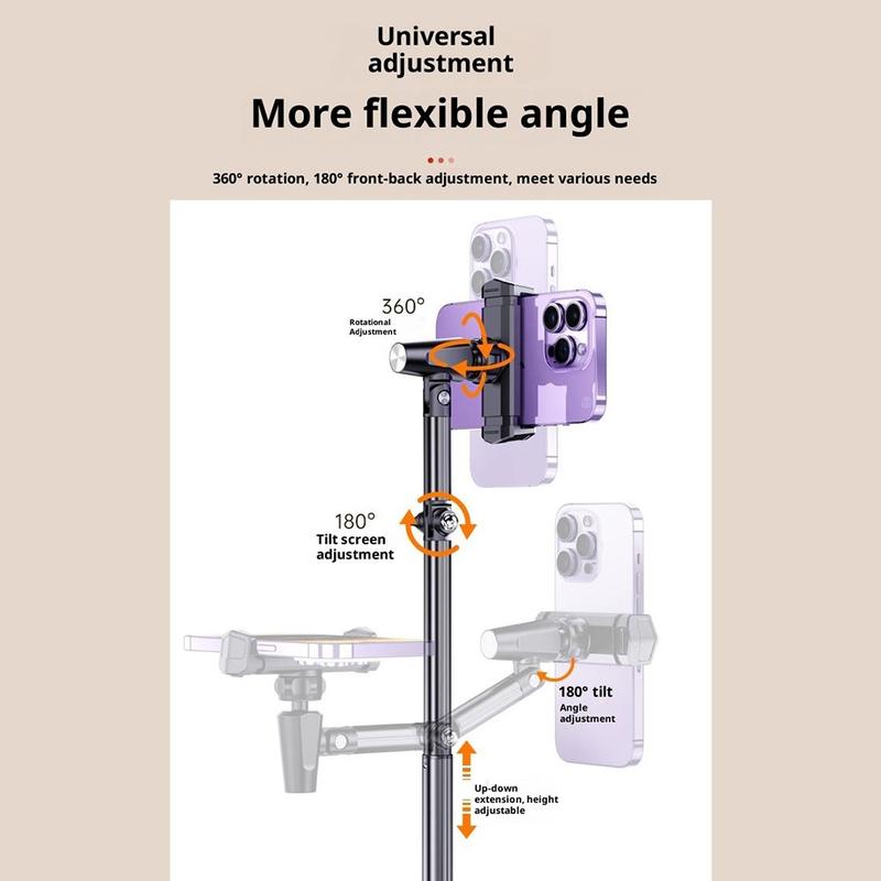 - Verstellbare Höhe und Winkel - Die ausziehbare Metallstange ermöglicht eine vielseitige Positionierung und den perfekten Winkel für Überkopfaufnahmen, Livestreams oder Tischaufnahmen.