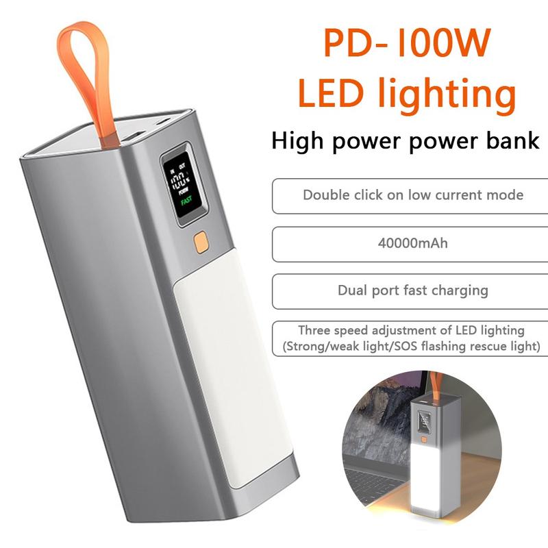 • T133LP 40000mAh PD 100W Schnellladegerät Power Bank Telefon Laptop Ladegerät Externer Akku mit LED Licht
