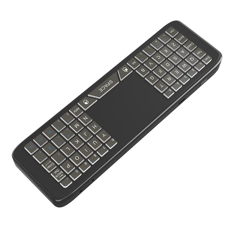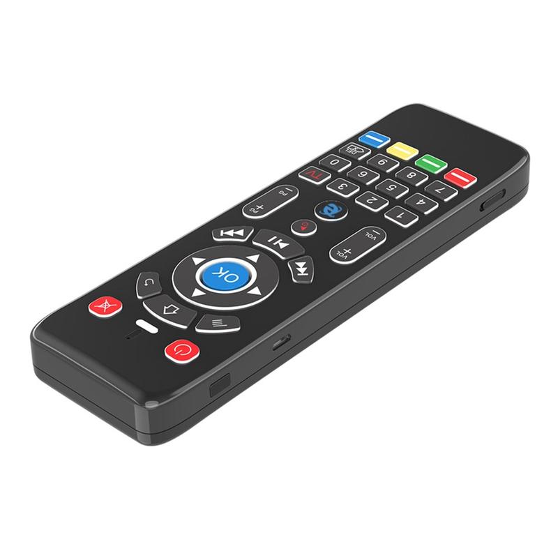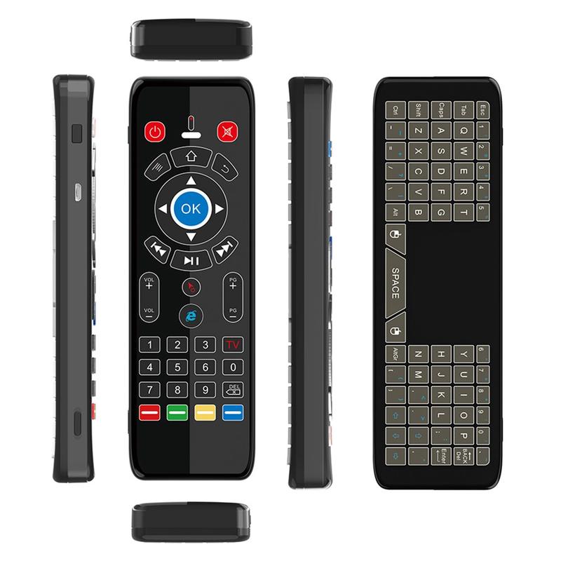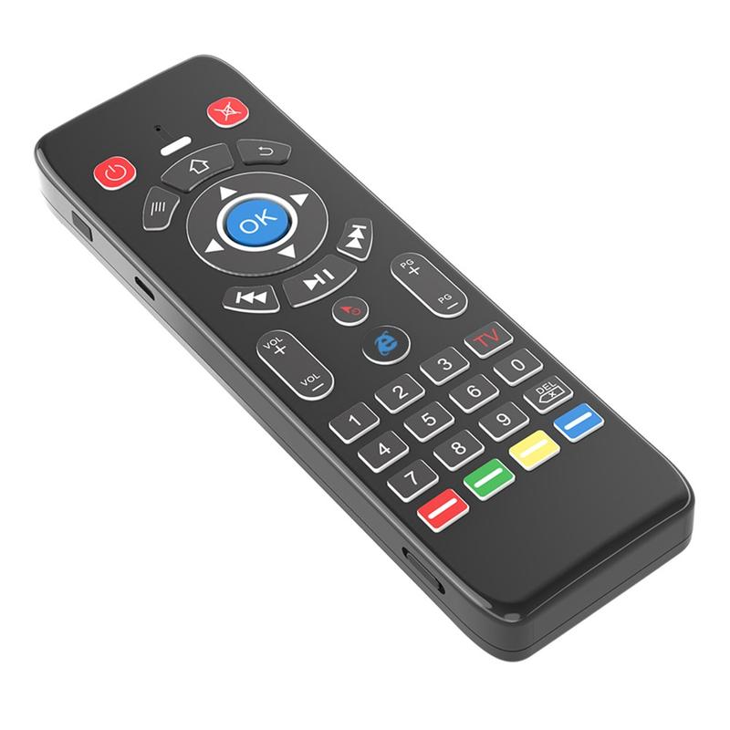 Die kabellose Fernbedienung T16+ vereint mehrere Steuerungsmethoden in einem kompakten Gerät: Gyroskop-Luftmaus, Touchpad, vollständige QWERTZ-Tastatur und 5-Tasten-IR-Lernfunktion. Sie wurde entwickelt, um mehrere Controller zu ersetzen und die Navigation auf Smart-Geräten zu vereinfachen.