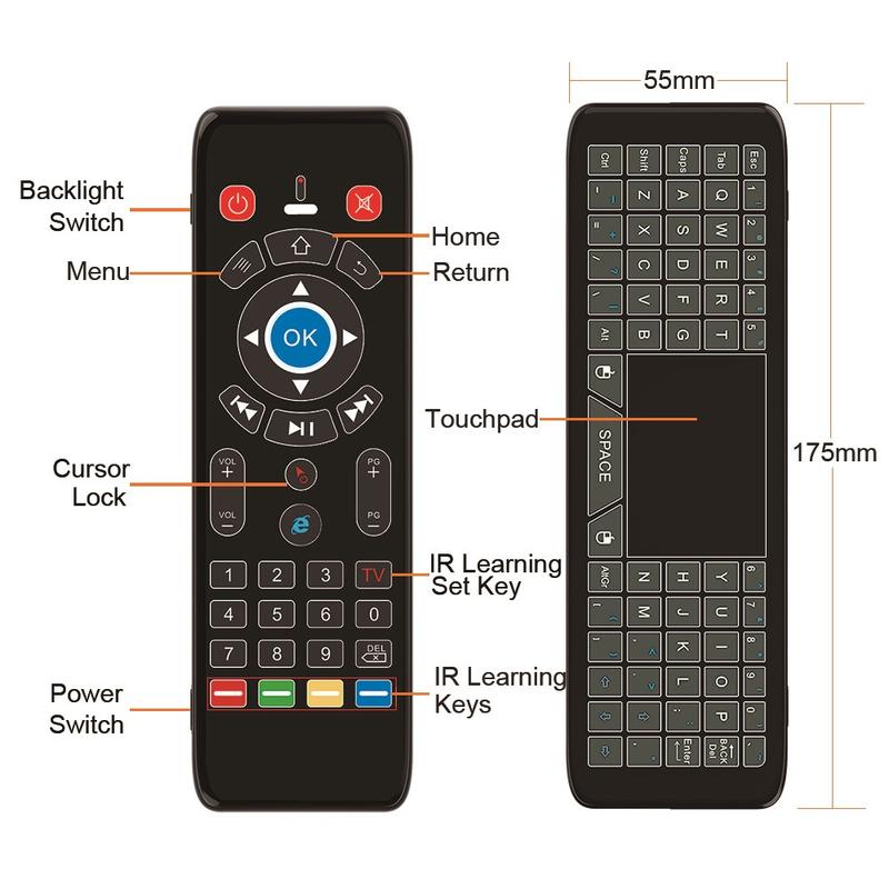 - Steuerungsfunktionen: Gyroskop-Luftmaus, Touchpad, QWERTZ-Tastatur, IR-Lernfunktion