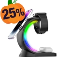 T17 3-in-1 RGB Light Magnetic Wireless Charger für iPhone 12/13/14/15/16/17/Air Serie Desktop Schnellladestation Kompatibel mit MagSafe - Schwarz