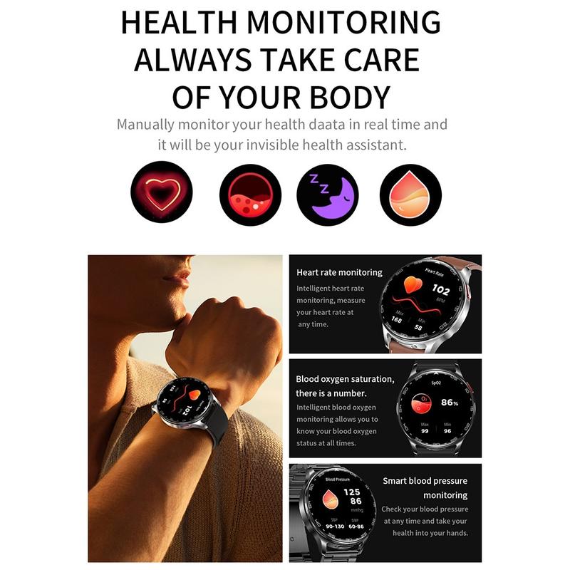 Genießen Sie Anrufe im Freisprechbetrieb, mitreißende Musik und Gesundheitsüberwachung rund um die Uhr in einem kompakten Gerät. Die T97 kombiniert ein hochauflösendes 1,39-Zoll-Display mit ausklappbaren Bluetooth-Ohrhörern, die sich in der Uhr aufladen lassen, und bietet so echten All-in-One-Komfort für Arbeit, Training und Reisen.