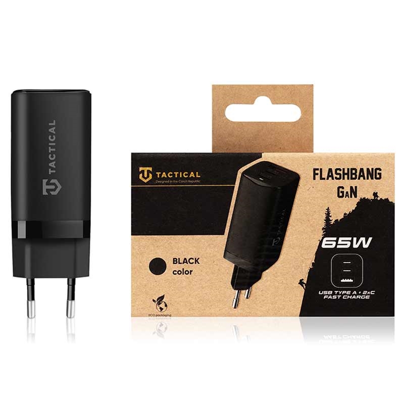 Tactical FlashBang GaN-Schnellladegerät – EU-Stecker, 2x USB-C, 1x USB-A – 65W