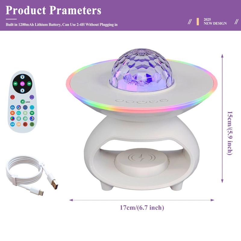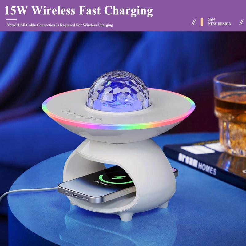 TCSP-001-C 4-in-1-Sternenprojektor-Lampe - 15 W kabelloses Ladegerät, Bluetooth 5.0-Lautsprecher und RGB-Stimmungslicht