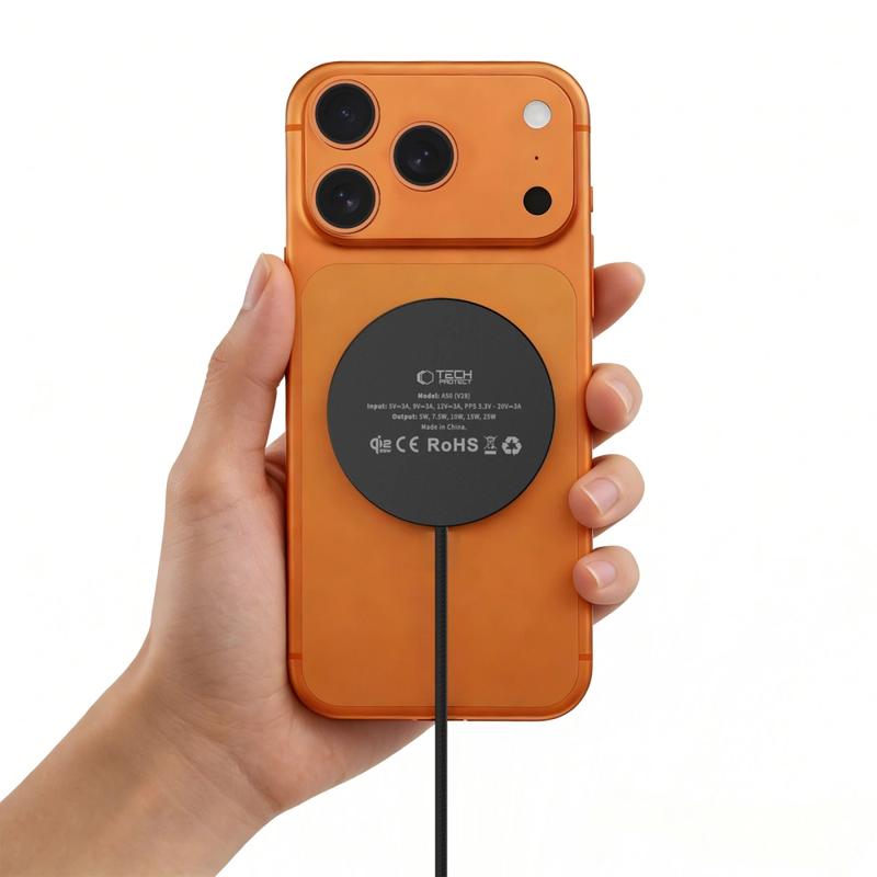 Laden Sie Ihr Smartphone schneller und bequemer mit dem magnetischen kabellosen Ladegerät Tech-Protect A50. Dieses kompakte Ladegerät unterstützt den neuesten Qi2.2-Standard und bietet bis zu 25W kabellose Ladeleistung für kompatible Geräte, während die integrierte Magnethalterung dafür sorgt, dass Ihr Smartphone perfekt ausgerichtet ist - für einen stabilen und effizienten Ladevorgang.