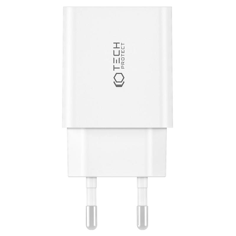 Das Tech-Protect C35W ist ein universelles Wandladegerät mit zwei USB-C-Anschlüssen, mit dem Sie zwei Geräte gleichzeitig aufladen können, ohne dass die Gefahr einer Überlastung oder einer Beschädigung des Akkus besteht. Es verfügt über ein Power Delivery (PD)-Protokoll von 35 W, ein intelligentes Managementsystem, das die Spannung automatisch an bestimmte Geräte anpasst.