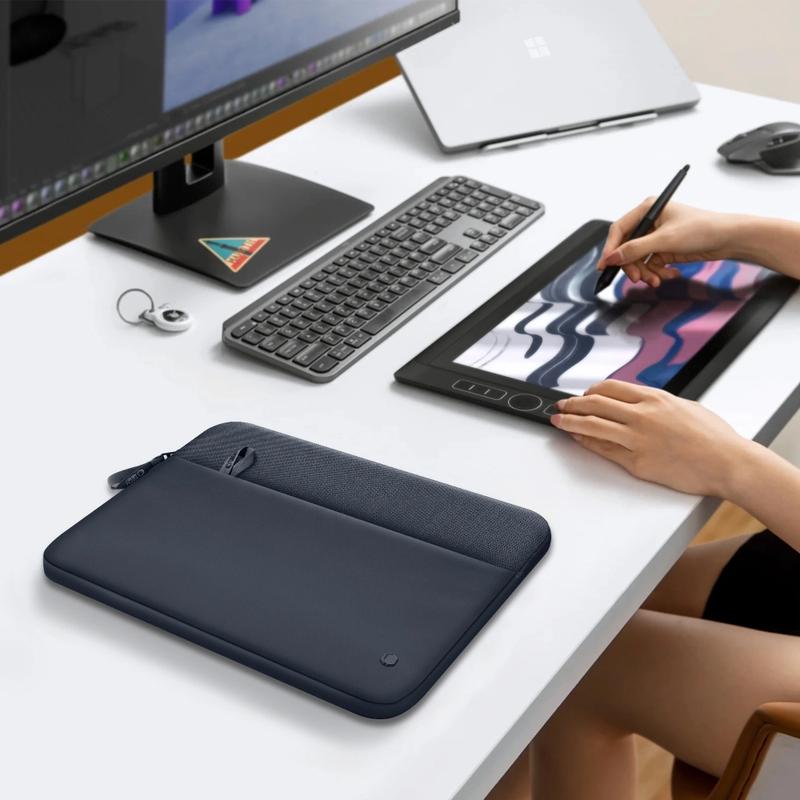 Weich gefütterte Hüllen reduzieren Mikrokratzer, die häufig entstehen, wenn Laptops an Reißverschlüssen, Schlüsseln oder anderen Gegenständen in einer Tasche reiben. Eine schlanke Hülle hilft auch dabei, Rucksäcke zu organisieren, indem sie technische Geräte von anderen Gegenständen trennt.