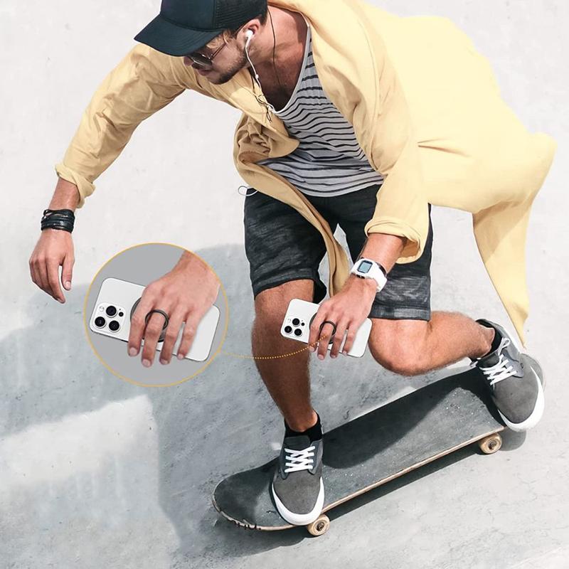Tech-Protect Magnetic MagSafe Phone Ring ist ein innovativer Fingerhalter, der die MagSafe-Technologie mit Komfort und Multifunktionalität verbindet. Der einfach zu bedienende Ring ist aus einer robusten Aluminiumlegierung gefertigt und wird auf der Rückseite des Telefons in einer MagSafe-kompatiblen Hülle oder direkt am Smartphone angebracht.