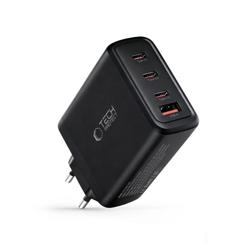 Tech-Protect NC120W GaN-Ladegerät mit 3x USB-C-, 1x USB-A-Anschlüssen - 120W Schnellladung