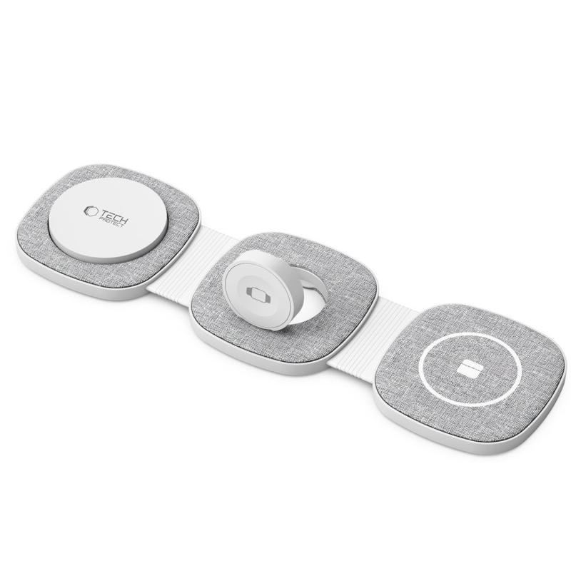 Tech-Protect QI15W-A32 3-in-1 faltbares magnetisches drahtloses Ladegerät - MagSafe-kompatibel - Grau