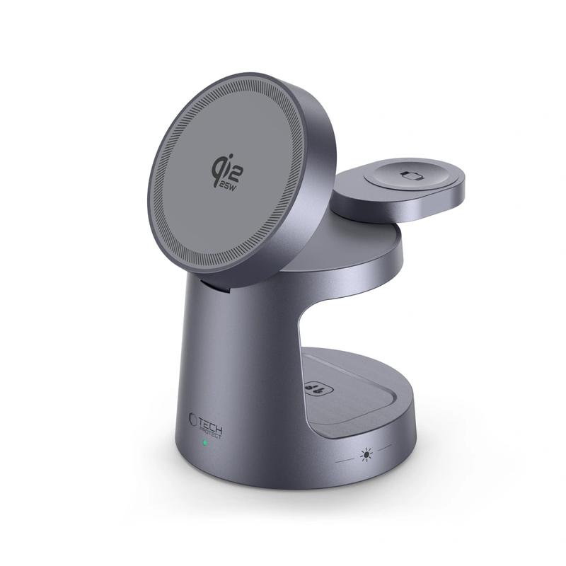 Tech-Protect QI2.2-25W-A48 3-in-1 magnetisches MagSafe-Wireless-Ladegerät – Dunkelgrau