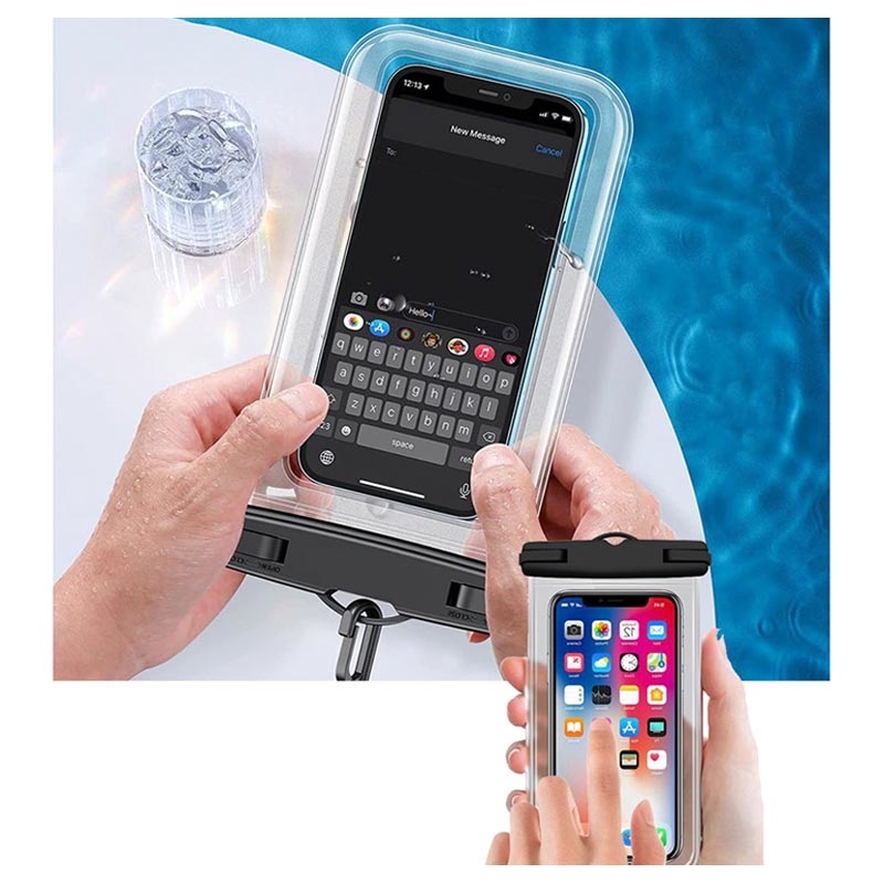 Stürzen Sie sich in Ihre Sommerabenteuer, während die wasserdichte Tech-Protect-Tasche Ihr Smartphone sicher und geschützt aufbewahrt. Diese IPX8-zertifizierte Universaltasche garantiert vollständigen Schutz vor Wasser, Staub oder Salz, während das vollständig transparente Design es Ihnen ermöglicht, auf Ihren Sommerausflügen unvergessliche Unterwasserfotos zu machen. Die Hülle besteht aus flexiblem, weichem Material, das die komfortable Nutzung Ihres Smartphones nicht beeinträchtigt.