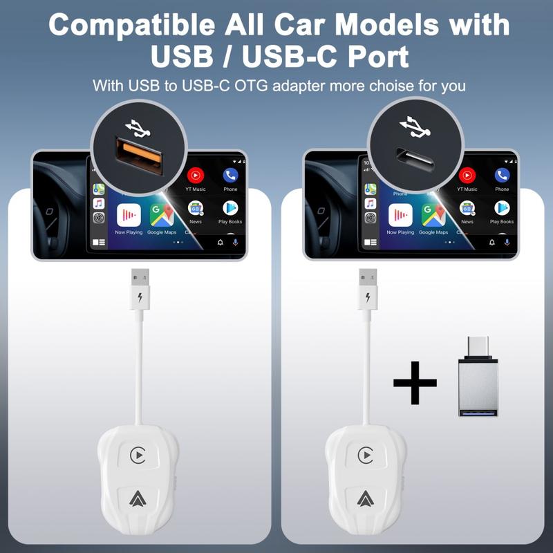 • THT-020-9 Car Wireless Carplay Android Auto Dongle Kabelgebundener zu drahtloser Adapter - Weiß