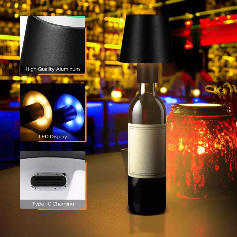 • Touch Control Wine Bottle Light 3 Changing Color LED Lamp Portable Desk Light für Bar, Party - Schwarz