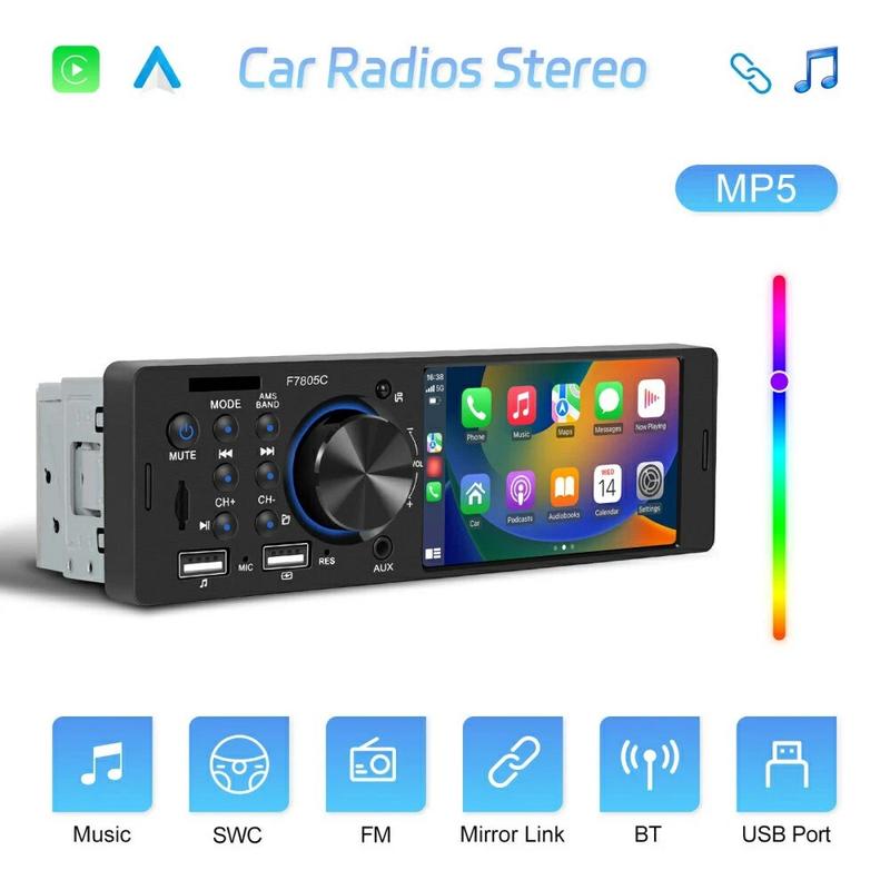 Verwandeln Sie ein in die Jahre gekommenes Armaturenbrett in einen Smartphone-Hub mit dieser schlanken F7805C Head-Unit. Das 10,4 cm (4,1 Zoll) große kapazitive Display unterstützt CarPlay, Android Auto und Mirror Link, sodass Sie Karten verfolgen, Anrufe entgegennehmen und Wiedergabelisten streamen können, ohne mit Ihrem Telefon herumzufummeln. Bluetooth 5.1 sorgt für klare Gespräche, und mit der 7-farbigen Hintergrundbeleuchtung können Sie die werkseitige Beleuchtung anpassen. Es ist für 12-Volt-Systeme ausgelegt, wiegt weniger als 0,4 kg und lässt sich mit minimalem Verkabelungsaufwand in die meisten Single-DIN-Schächte einbauen.