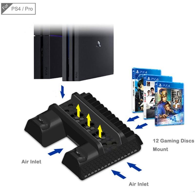 TP4-882 Vertikaler Ständer mit Kühlung Lüfter Controller Kühler Dual-Ladestation für Sony Playstation PS4/PS4 Slim/PS4 Pro