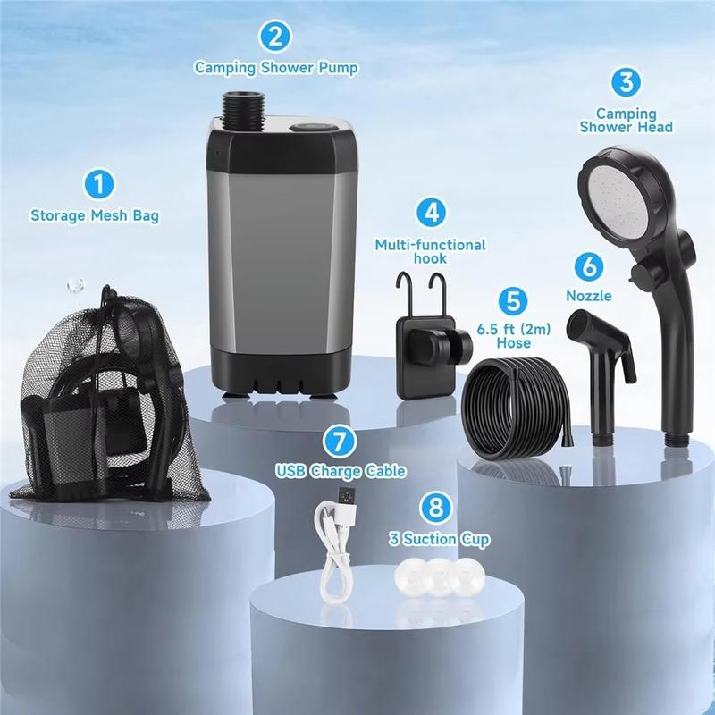 - Tragbare elektrische Duschpumpe für Camping, Reisen, Strandbesuche, das Waschen von Haustieren und Reinigungsarbeiten im Freien