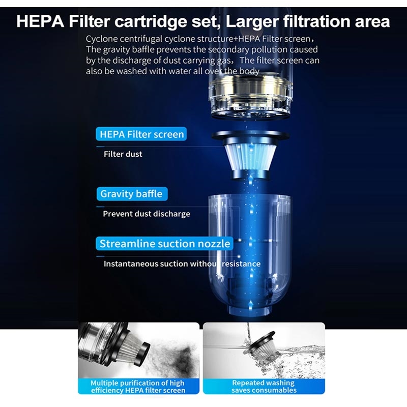 Dieser Handstaubsauger bietet die perfekte Mischung aus Tragbarkeit und Reinigungsleistung. Dank seines kabellosen Designs, der starken Saugkraft und der LED-Beleuchtung eignet er sich sowohl für die schnelle Reinigung als auch für die Tiefenreinigung, egal ob zu Hause, im Büro oder unterwegs.
