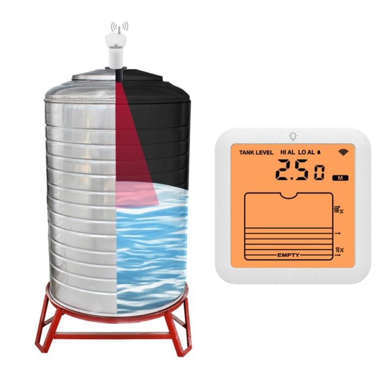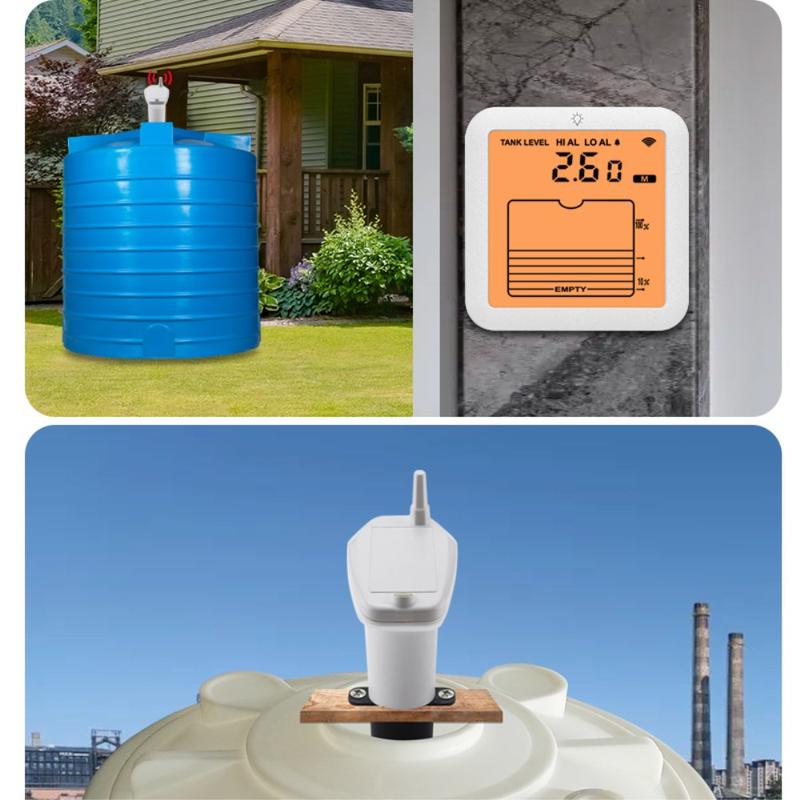 TS-FT007 Ultraschall-Wasserstandswächter - kabelloser Tanksensor mit hintergrundbeleuchtetem 3,42-Zoll-LCD und Hoch-Tief-Alarm