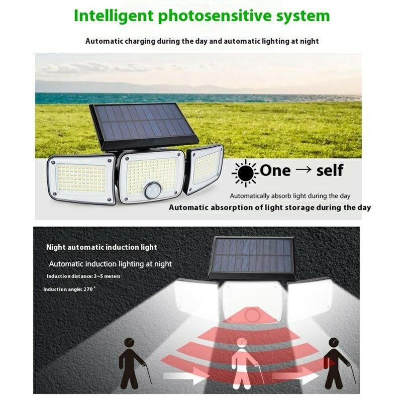 TY10305 3-Kopf-Solar-Wandleuchte - 280 LED, Bewegungssensor, IP44 wasserdichte Außenlampe