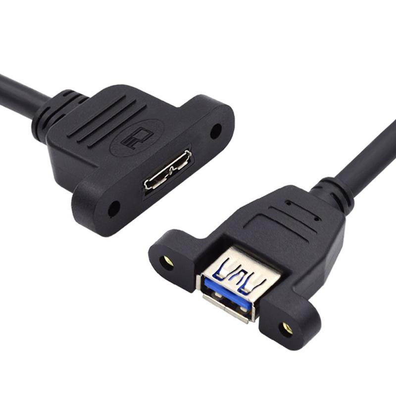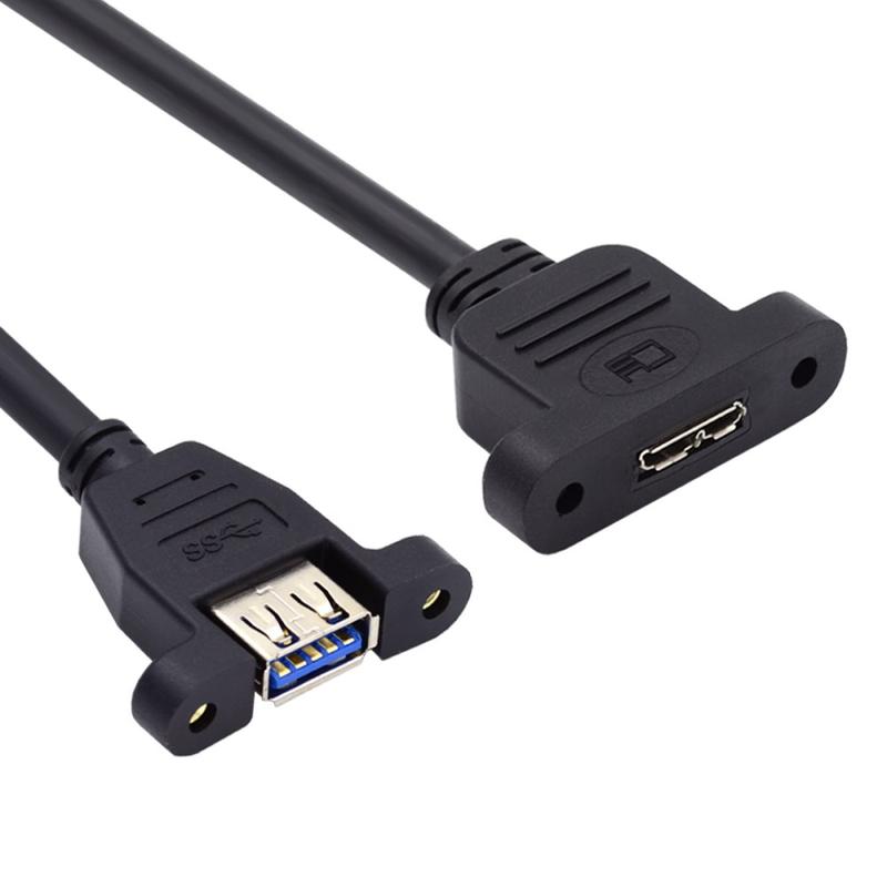 Es gibt 2 Schraublöcher am Micro USB 3.0 Female Ende. Kabellänge: ca. 50cm