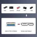 Passt USB 3.0 Typ-A Buchsen an USB Micro 3.0 Buchsen an und umgekehrt. Mit diesem Kabel können Sie direkt eine Micro USB 3.0 Buchse anschließen, die in eine USB 3.0 Verlängerung umgewandelt wird.