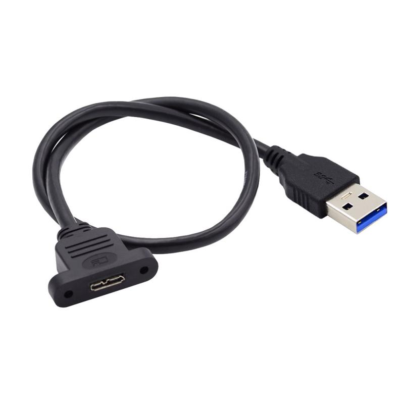 U3-083-AM 50cm Typ-A USB 3.0 Stecker zu Micro 3.0 Typ-B Buchse Konverter 5Gbps Schraubmontage Typ Verlängerungskabel