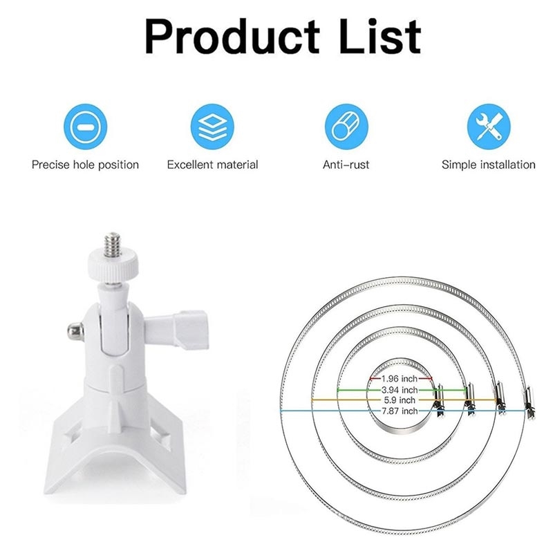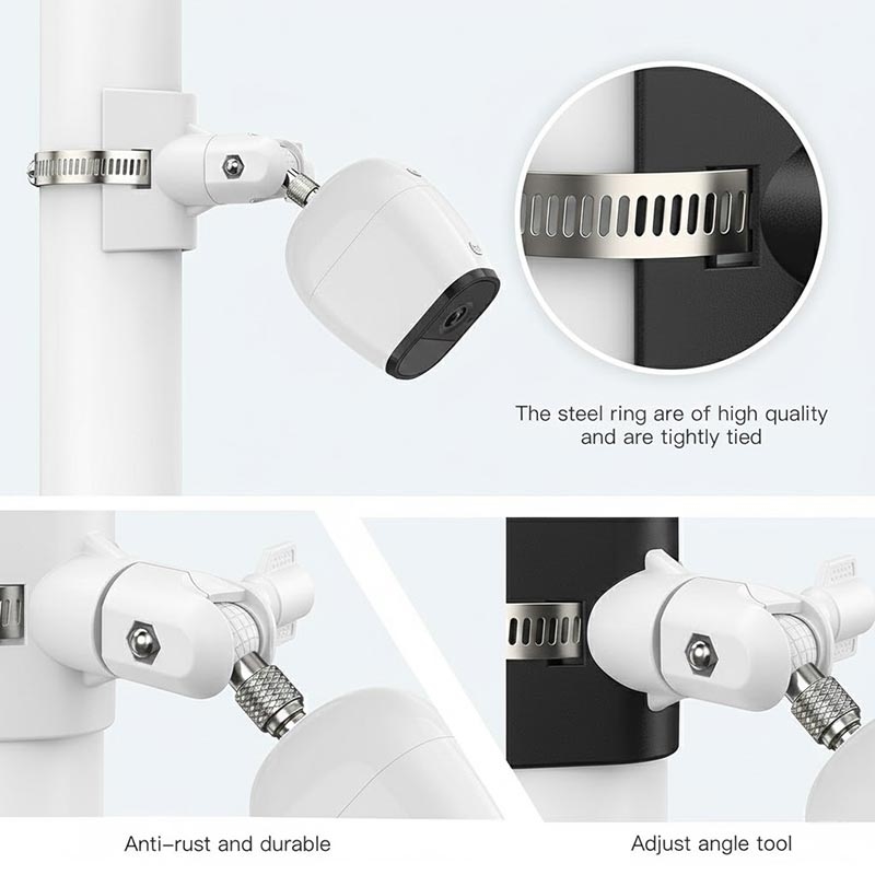 Die mit einer Edelstahlklemme ausgestattete Halterung bietet eine hohe Haltekraft und langfristige Stabilität. Sie hält die Kamera sicher an Masten oder runden Konstruktionen, auch im Freien.