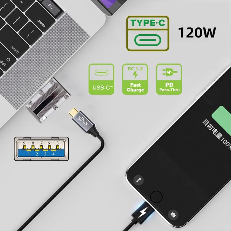 • UC-029-TC002 USB 3.1 Typ-C-Buchse auf USB 3.0 Typ-A-Stecker 90 Grad links abgewinkelt flacher Typ 10Gbps Daten 120W Power Adapter