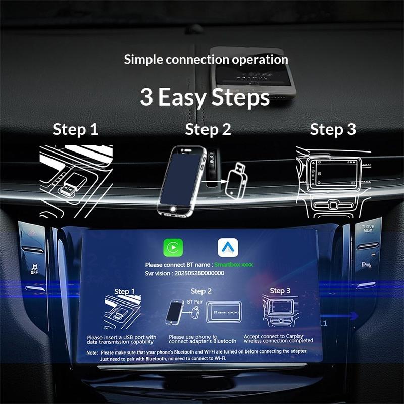 Der Ultra K15 unterstützt sowohl iPhone- als auch Android-Geräte innerhalb des angegebenen Kompatibilitätsbereichs und nutzt Bluetooth 5.2 sowie Dualband-WLAN 2,4 GHz/5 GHz für die drahtlose Verbindung. Den bereitgestellten Informationen zufolge lässt sich die Kopplung des Smartphones in drei Schritten abschließen, und der Adapter stellt die Verbindung nach dem Starten des Fahrzeugs innerhalb von etwa 5 bis 15 Sekunden automatisch wieder her. Dies sorgt für mehr Komfort im Alltag, hält den Armaturenbrettbereich aufgeräumter und reduziert Kabelsalat.