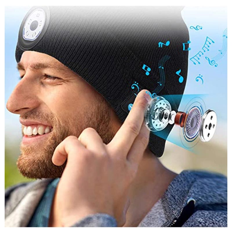 Bereiten Sie sich auf spannende Aktivitäten im Winter mit dieser fantastischen Strickmütze vor. Diese Musikmütze ist aus ultraweichem Material gefertigt, das elastisch ist und einen hervorragenden Komfort bietet. Diese fantastische Mütze hat eingebaute Stereolautsprecher und ein Mikrofon, so dass Sie während Ihrer Aktivitäten Musik hören können. Sie kommt mit einem freihändig bedienbaren LED-Licht, das wiederaufladbar und abnehmbar ist. Sie können es mit einer Powerbank, einem Autoladegerät, einem Laptop usw. aufladen. Sie müssen Ihr Geld nicht für Batterien verschwenden! Es ist für viele Aktivitäten geeignet: Laufen, Joggen, Camping, Radfahren, Fitness, etc. Mit dieser Bluetooth-Mütze können Sie sicher im Dunkeln laufen und Musik freihändig genießen!
