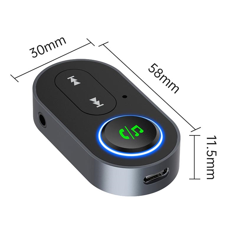 Machen Sie Ihren Laptop, Ihr Autoradio, Ihre Kopfhörer, Ihre Stereoanlage zu Hause oder jedes andere Gerät Bluetooth-fähig, indem Sie diesen Bluetooth 5.0-Audioempfänger einstecken. Der Audioempfänger wird mit einer 3,5-mm-AUX-Buchse zum Anschluss Ihrer Kopfhörer und einem 3,5-mm-auf-3,5-mm-Adapter zum Anschluss an Ihr Autoradio oder Ihre Stereoanlage geliefert. Dank seiner geringen Größe und seines diskreten Aussehens stört er Sie nicht, wenn er angeschlossen ist, und lässt sich leicht mitnehmen. Das Gerät verfügt nicht nur über Audiofunktionen, sondern auch über ein integriertes Mikrofon für die Entgegennahme von Anrufen im Freisprechbetrieb. Sie können bis zu zwei Geräte gleichzeitig anschließen und müssen sich keine Sorgen machen, Ihre Anrufe zu verpassen.