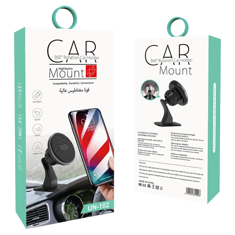 Die magnetische Autohalterung UN-102 ist der perfekte Begleiter auf langen Fahrten. Dank der vier eingebauten N50-Magnete hält sie Ihr Smartphone auch bei Fahrten auf rauen Bergstraßen fest an seinem Platz. Diese Halterung für das Armaturenbrett hat einen um 360 Grad drehbaren Kopf, der Ihnen hilft, den besten Blickwinkel zu finden.