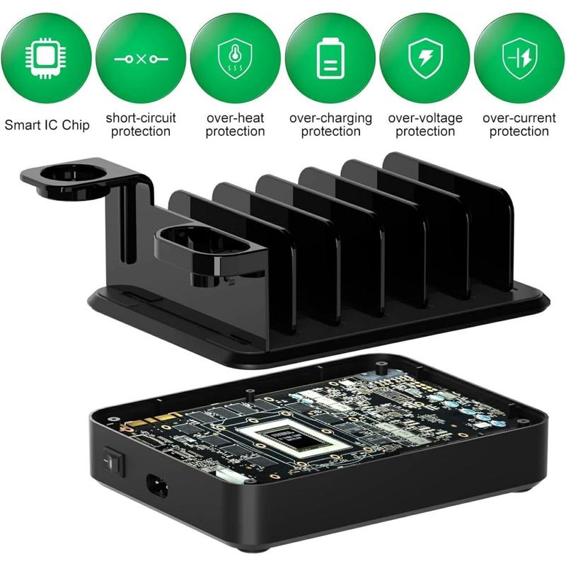 - 110W kombinierte Leistung über 6 Anschlüsse sorgt dafür, dass sechs Geräte gleichzeitig geladen werden.